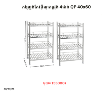 កញ្ច្រែងកែវអ៊ីណុកជ្រុង 4ជាន់ QP 40×60