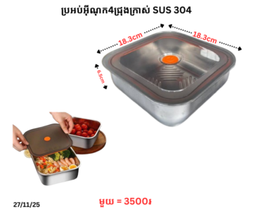 ប្រអប់អ៊ីណុកជ្រុងក្រាស់ SUS 304 (1200ml)