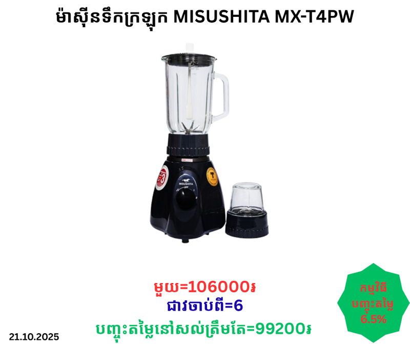 ម៉ាស៊ីនទឹកក្រឡុក Misushita MX-T4PW