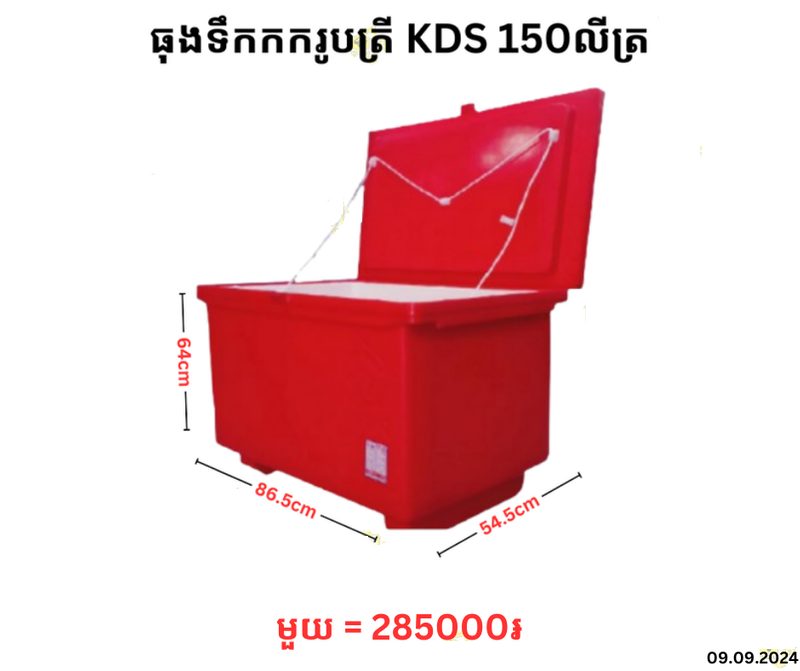 ធុងទឹកកករូបត្រី KDS 150លីត្រ December 22, 2025 Posted in 28500, TTK, ធុងទឹកកក, ធុងទឹកកករូបត្រី, ធុងទឹកកករូបត្រី KDS