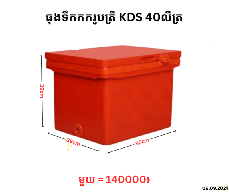 ធុងទឹកកករូបត្រី KDS 40លីត្រ December 22, 2025 Posted in 140000, TTK, ធុងទឹកកក, ធុងទឹកកករូបត្រី, ធុងទឹកកករូបត្រី KDS
