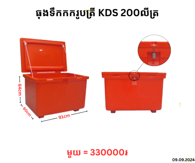 ធុងទឹកកករូបត្រី KDS 200លីត្រ December 22, 2025 Posted in 330000, TTK, ធុងទឹកកក, ធុងទឹកកករូបត្រី, ធុងទឹកកករូបត្រី KDS